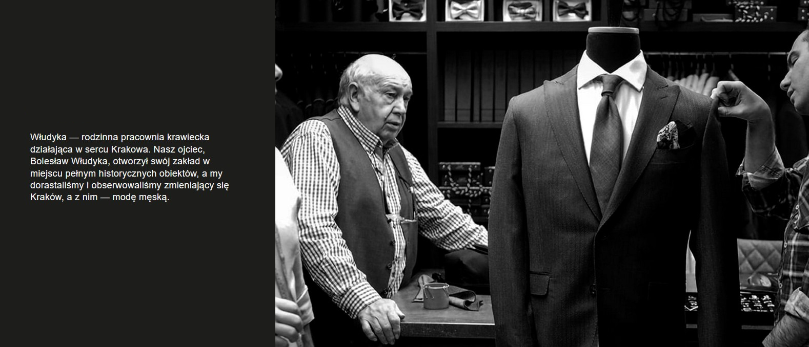 Włudyka — rodzinna pracownia krawiecka działająca w sercu Krakowa. Nasz ojciec, Bolesław Włudyka, otworzył swój zakład w miejscu pełnym historycznych obiektów, a my dorastaliśmy i obserwowaliśmy zmieniający się Kraków, a z nim — modę męską.